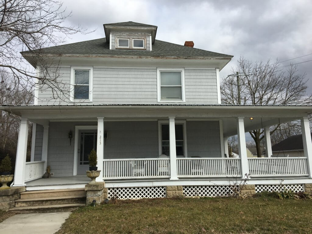 Foursquares were a popular choice because they were simple, clean, and economical to build. They enabled a lot of middle-class families to become homeowners. Their interior layouts offered large rooms and multiple bedrooms, perfect for families. They fit well on smaller city and town building lots, although they were also built as farmhouses. They were easily expanded with additions. And, in an era of porch-sitting, they had lovely large covered front porches.