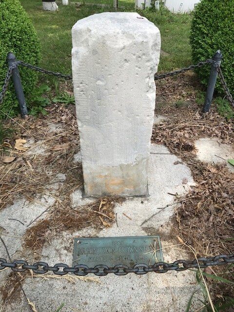 “In Pre-Revolutionary Colonial America, these monuments marked the South West corner of the THREE LOWER COUNTIES of the Delaware, at the time a part of the Pennsylvania Colony. Originally determined by local surveyors (two small stones) circa 1750. Verified by Charles Mason and Jeremiah Dixon (Large Marker) circa 1764.”