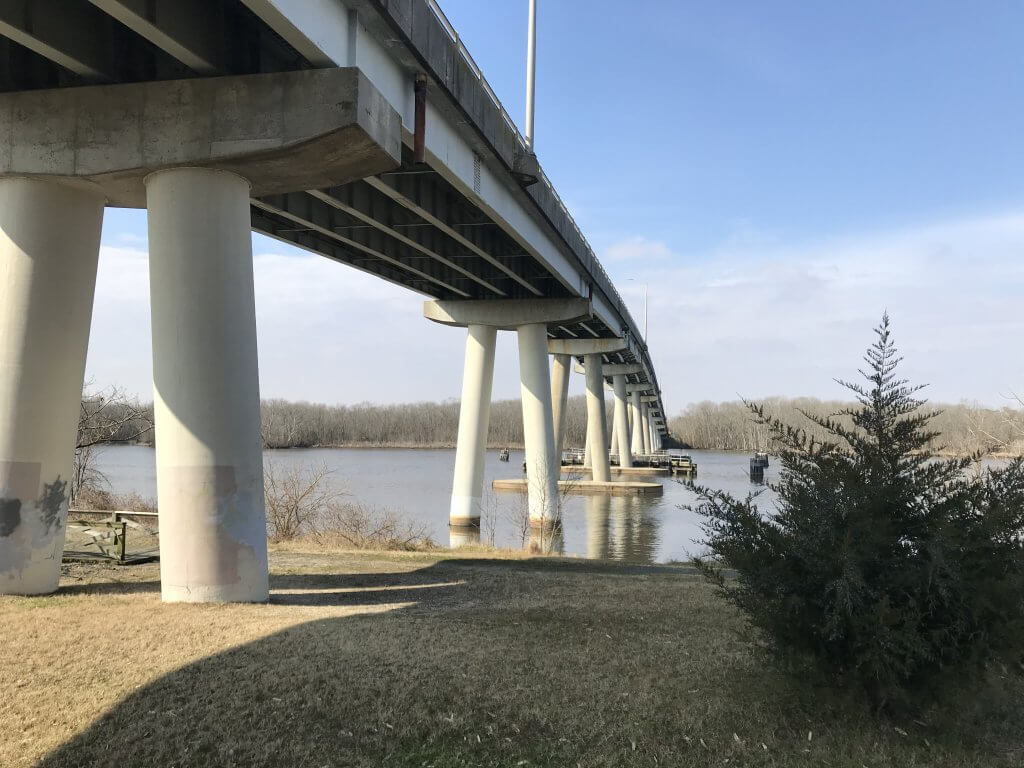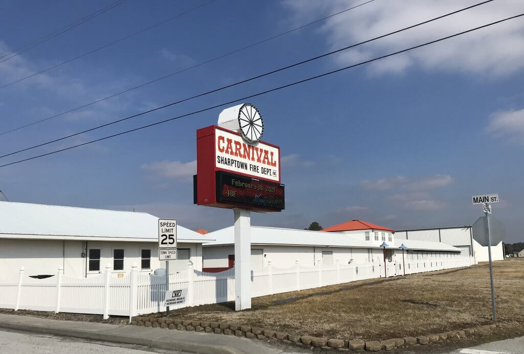 In Sharptown, a high modern bridge arches over the Nanticoke River, with a riverside park and boat ramp nestled underneath. The town has an annual firemen’s carnival.